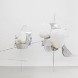 Cast and polished aluminum, polished aluminum rods, plaster, beeswax, rubber